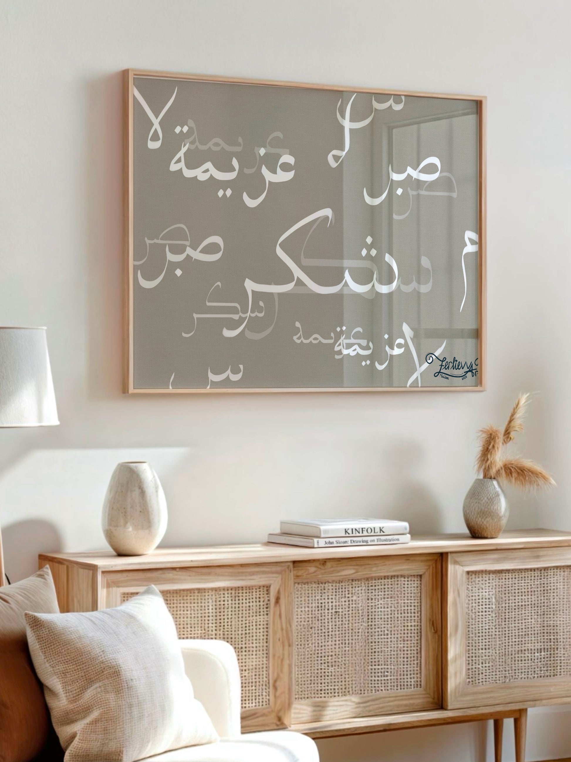 Sabr, Shukr and ‘Azimah Islamic Calligraphy ; Digital art, Wall frame